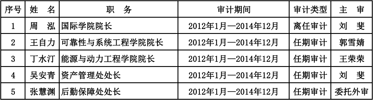 受学校组织部委托,我处今年将对以下5位处级领导干部进行经济责任审计。现予以公示。