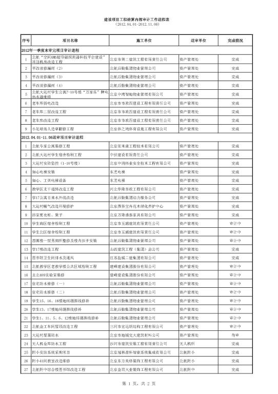 为了积极落实审计公开制度,现将2012年4月1日至11月6日工程内部审计工作进程公告如下: