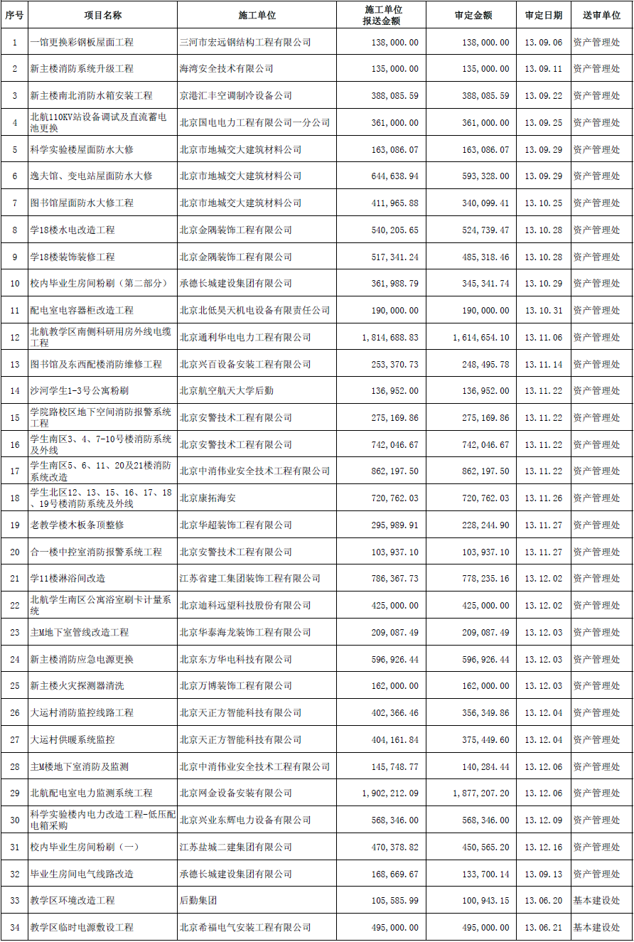 为落实学校审计公开制度,现对2013年度经内部审计审定金额超过10万元的项目的审计结果进行公告如下,公告期三个月。